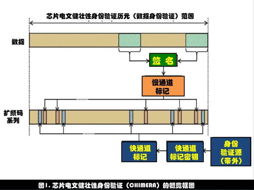 CHIMERA增强功能的基本操作始于GPS发射机对数据进行数字签名,然后生成要作为穿孔插入扩频码中的标记。这些标记可能来自数字签名(慢通道)或单独生成的密钥(快通道)。用户设备可以使用GPS公共证书来验证签名,从而验证数据的真实性和信号的时序。图1概述了CHIMERA的增强功能。
